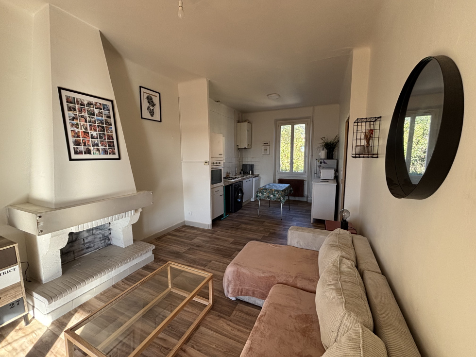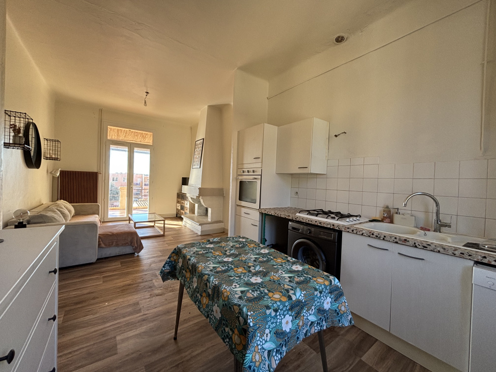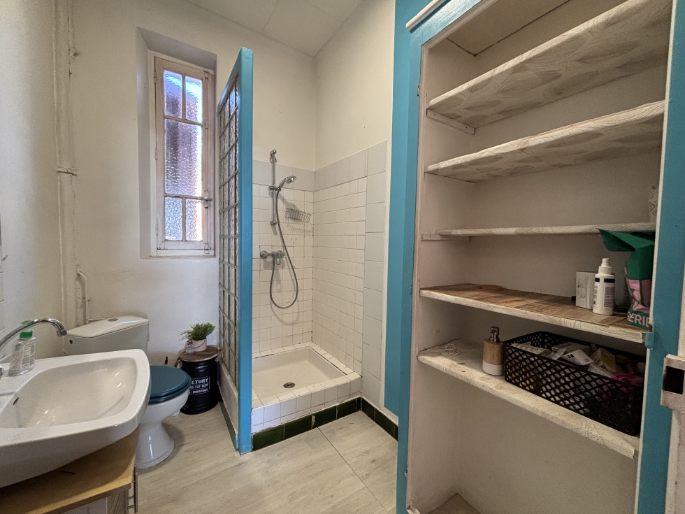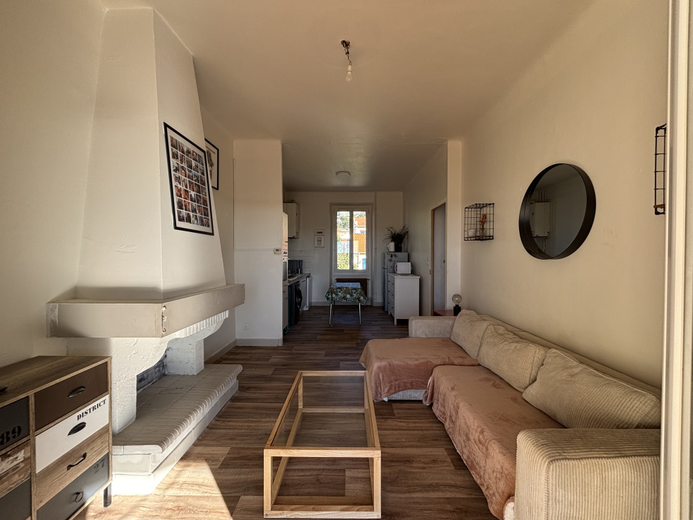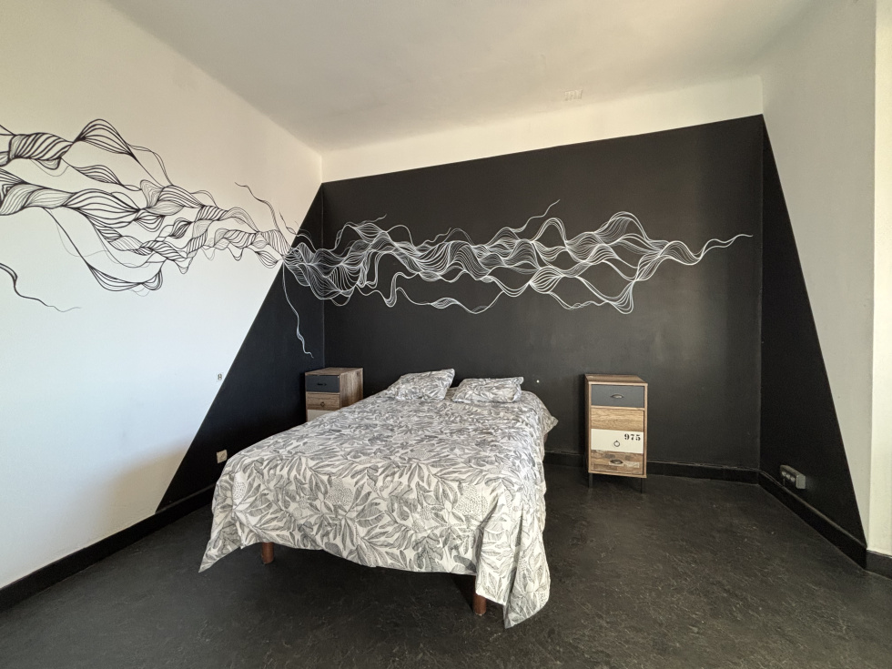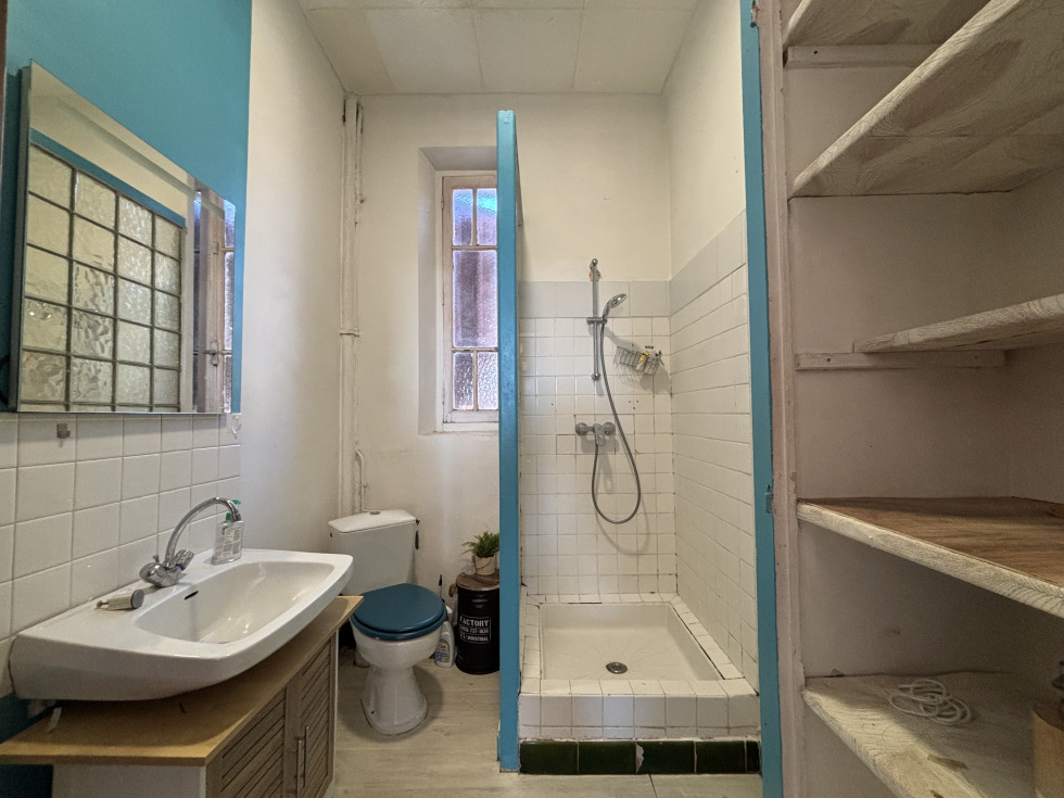 À l’étage, avec accès par un escalier sur le coté, avec une hauteur sous plafond de 3,05 m,un appartement T3 de 57 m2 environ comprenant : séjour avec cuisine ouverte, couloir, 2 chambres, ainsi que d’une salle d'eau avec WC, le tout donnant sur une terrasse de 24 m2 environ.