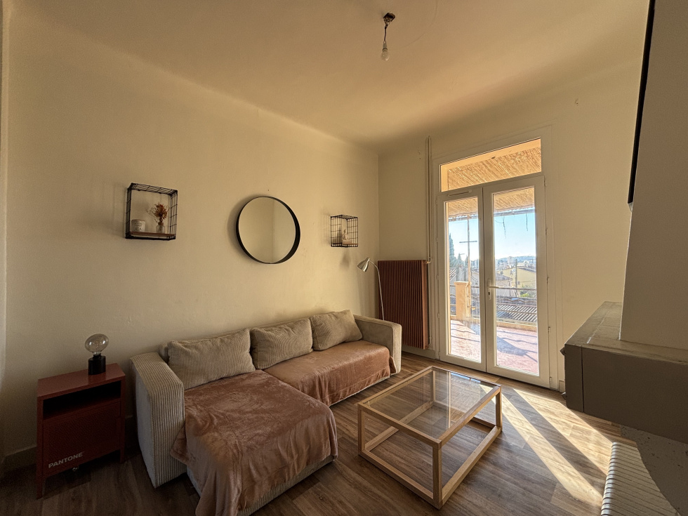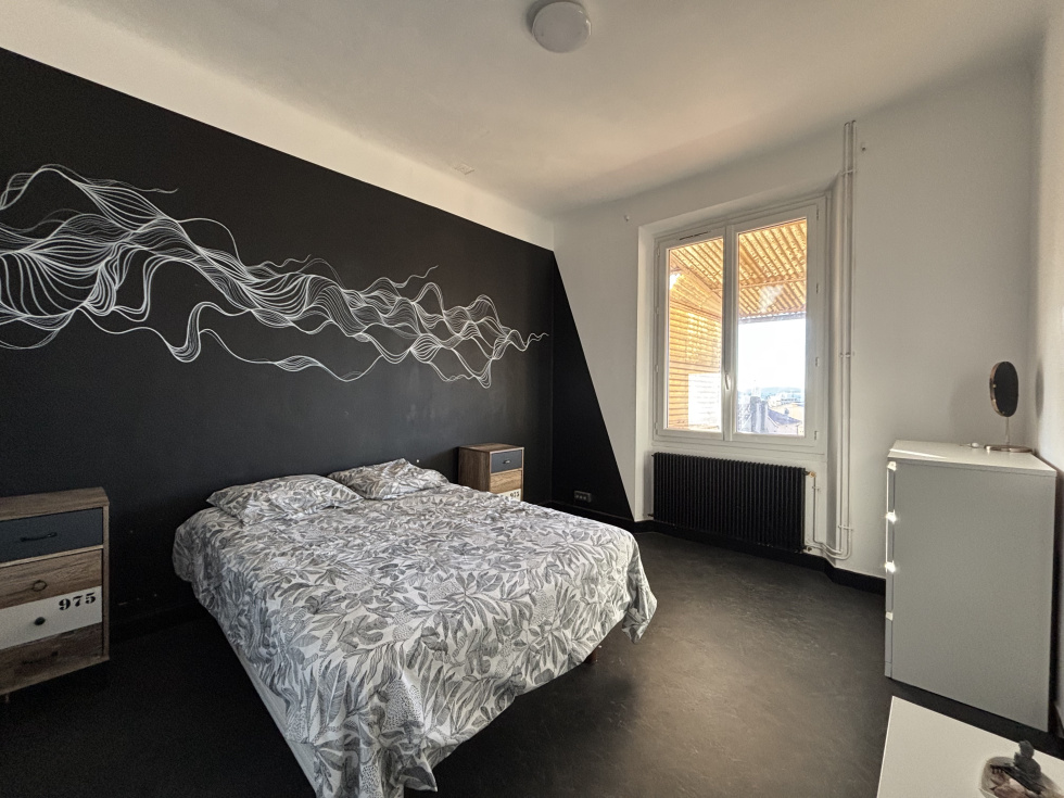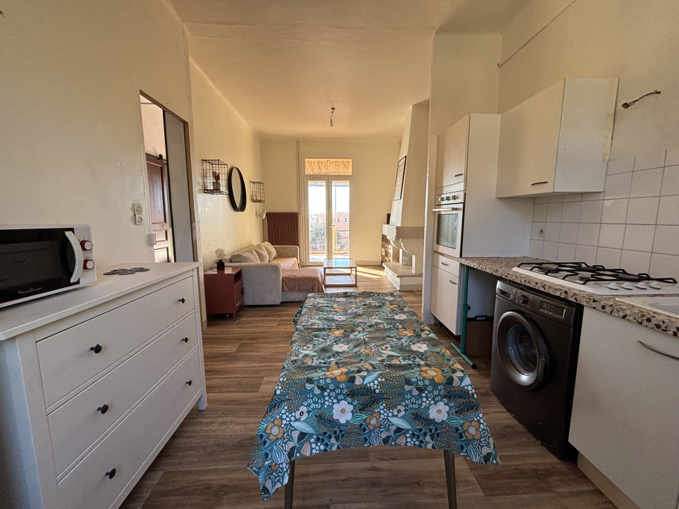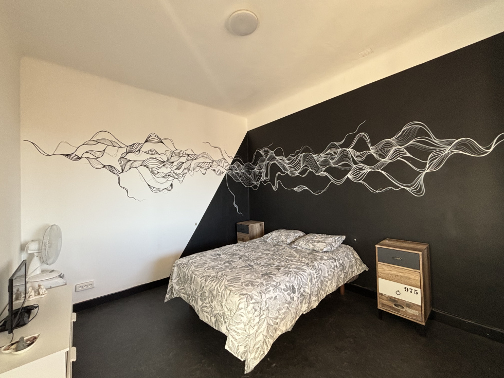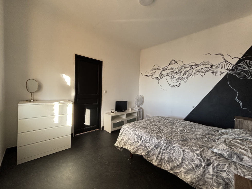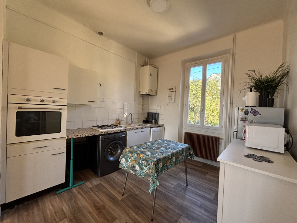À l’étage, avec accès par un escalier sur le coté, avec une hauteur sous plafond de 3,05 m,un appartement T3 de 57 m2 environ comprenant : séjour avec cuisine ouverte, couloir, 2 chambres, ainsi que d’une salle d'eau avec WC, le tout donnant sur une terrasse de 24 m2 environ.