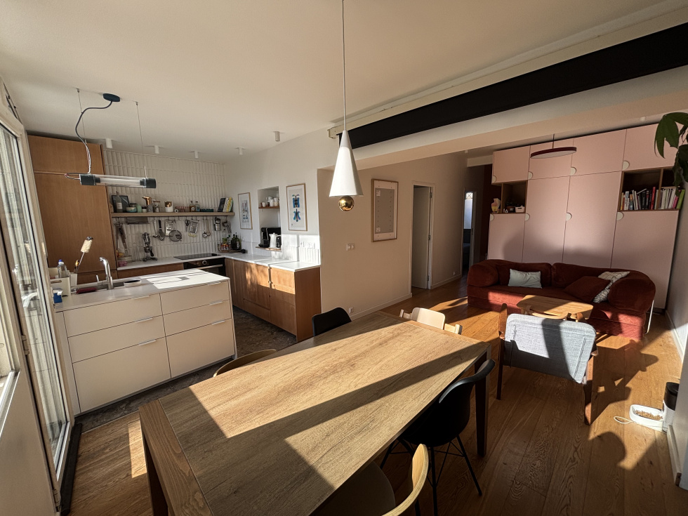 Devant le séjour et la cuisine se trouve coté sud une belle terrasse de 30 m2 environ, prolongée par un jardin de 50 m2, le tout protégé du vis à vis, idéal pour des moments de détentes et de convivialité
